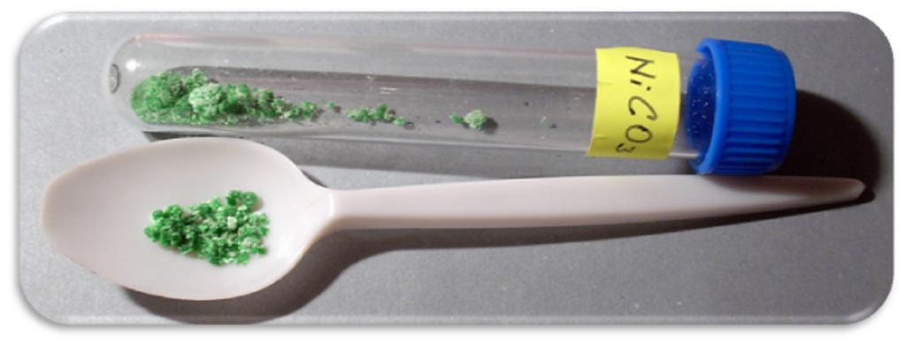 Keywords: Uhličitan nikelnatý.PNG Uhličitan nikelnatý - NiCO3 own 2007-06-24 Ondřej Mangl Není nutno Carbonates Nickel compounds Samples of chemical compounds
