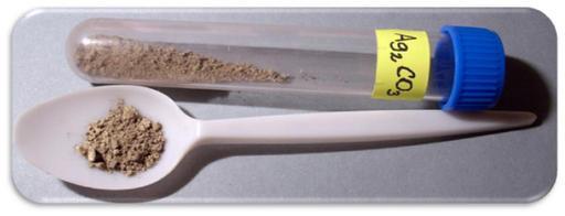 Keywords: Uhličitan stříbrný.PNG Uhličitan stříbrný - Ag2CO3 own 2007-06-24 Ondřej Mangl Není nutno Silver carbonate Samples of chemical compounds