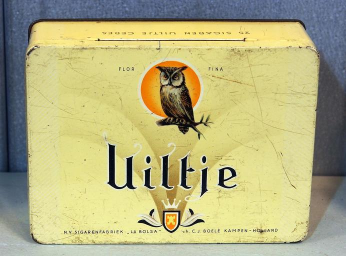 Keywords: Uiltje Flor Fina sigaren blik pic1.JPG Old product not sold anymore own 2013-11-02 14 09 07 Alf van Beem CC-Zero Trademarked Cigar tins Uiltje cigars Nostalgia by Alf van Beem
