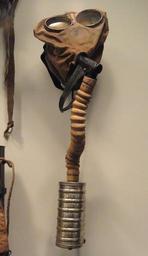 | Keywords: UK gas mask - National World War I Museum - Kansas City, MO - DSC07570.JPG Exhibit in the National World War I Museum at the Liberty Memorial 100 W 26th Street Kansas City Missouri USA Photography was permitted in the museum without restriction Daderot 2011-11-01 14 11 09 Daderot Gas masks in the National World War I Museum |