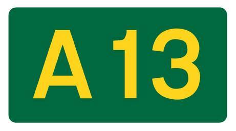 Keywords: UK road A13.svg en UK road number patch A13 own Mauls Diagrams of route signs of the United Kingdom 13 number