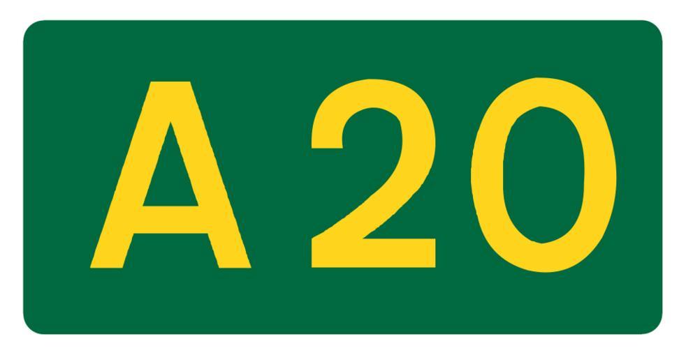 Keywords: UK road A20.svg en A20 own Mauls date Diagrams of route signs of the United Kingdom 20 number