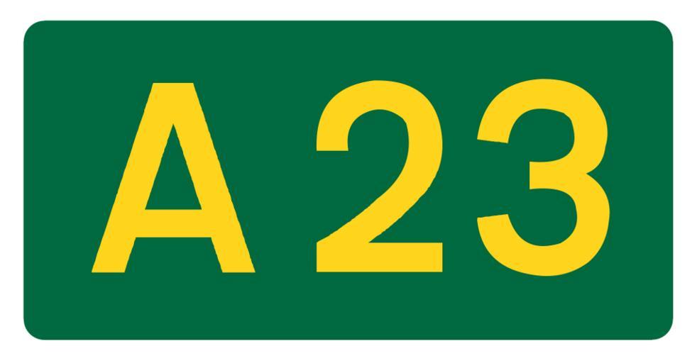 Keywords: UK road A23.svg en A23 own Mauls Diagrams of route signs of the United Kingdom 23 number A23 road England