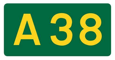 Keywords: UK road A38.svg en UK road number patch own Mauls Diagrams of route signs of the United Kingdom 0038 38 number A38 road England