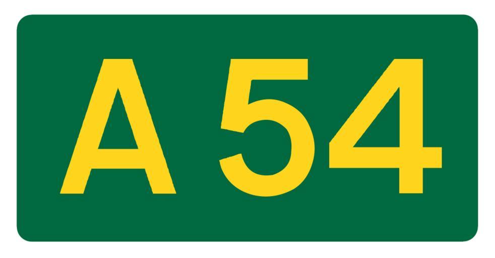 Keywords: UK road A54.svg en UK road number patch own Mauls Diagrams of route signs of the United Kingdom 54 number