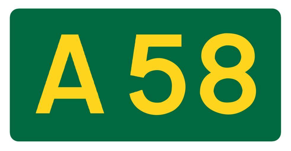 Keywords: UK road A58.svg en Uk road number patch own Mauls Diagrams of route signs of the United Kingdom 58 number A58 road England