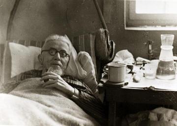 | Keywords: grini war fengsel tortur okkupasjon gestapo frigjøring seng monochrome indoor Bård Alsvik er underdirektør i Formidlingsseksjonen, og viser frem sitt bilde denne uken: "I utgangspunktet har jeg ikke noe favorittbilde – men jeg har mange favoritthistorier jeg gjerne skulle ha illustrert. Som den om min farfar – skolebestyrer Olav Alsvik, fange nr. 1 på Grini. Jeg var knappe tre år da han døde, og har ikke noe minne om ham. Men historien kjenner jeg: Som en hevnaksjon etter engelskmennenes raid i Svolvær i 1941, og befolkningens jubel over å bli ”frigjort”, en glede som ble meget kortvarig, dro Terboven personlig nordover sammen med politiminister Jonas Lie. Hus ble brent og seksti kvinner og menn ble arrestert, deriblant min farfar. Alle ble sendt sørover. De havnet først i Åneby (Hakadal), før de ble forflyttet til Grini. Med etternavn som begynner på A, ble min farfar fange nr.1 i fangeprotokollen for Grini. Men jeg fant ikke noe bilde av min farfar, eller noe annet som kunne knyttes til ham, da jeg gikk gjennom NTBs krigsarkiv. Jeg ble imidlertid fascinert av dette bildet av Lauritz Sand, tatt ved frigjøringen i mai 1945. Mens min farfar var den første, og slapp nokså raskt ut igjen, så var Lauritz Sand både den eldste og den siste som forlot Grini. Det sies dessuten at han var Norges mest torturerte mann. I bildeteksten står det: ”Han må holde senga da Gestapo har brukket hvert ben i hans armer og ben. Folk valfartet til sykesenga hans etter frigivelsen, og fant ham i godt humør og vel til mote”. På en byste, reist av Sand på Eiksmarka i Bærum kommune, står ordet ”NEI”, det eneste ordet Gestapo klarte å få ut av ham etter at han hadde sittet i fangenskap og blitt systematisk torturert og lemlestet siden arrestasjonen i september 1941. Dette reddet antageligvis flere nordmenn fra nazistenes klør." Det finnes ingen opplysninger om fotografen, men det er å finne i PA 1209 – NTBs krigsarkiv, boks Ue0092, mappe 3 ”Arresterte nordmenn. Grini”. Bård Alsvik in the section for outreach shows us his photo this week: “I don’t really have a favorite photo – but I have many favorite stories I would like to illustrate. Like the one about my grandfather – school principal Olav Alsvik, prisoner no 1 at Grini. I was just three when he died, and cannot remember him. But I know the story: As a revenge after the English’ raid of Svolvær in 1941, and the people’s celebration of being “freed”, a joy that was short-lived, Terboven went up to the north of Norway together with police minister Jonas Lie. Houses were burnt and 60 women and men were arrested, among them my grandfather. They were all sent to the south of Norway. First they came to Åneby (Hakadal) before they were moved to Grini prison camp. With a surname starting with A, my grandfather became prisoner no 1 in the prisoner protocol for Grini. But I didn’t find a photo of my grandfather, or something that could be related to him, when I looked through NTB’s war archive. However, I was fascinated by this photo of Lauritz Sand, taken at the liberation in May 1945. While my grandfather was the first, and was released quite quickly, Lauritz Sand was both the oldest and the last to leave Grini prison camp. It is also said that he was Norway’s most tortured man. In the caption it says: “He has to stay in bed, as Gestapo has broken every bone in his arms and legs. People flocked to his hospital bed after the liberation, and found him in good spirits.” On a bust of Sand, erected at Eiksmarka in Bærum municipality, is inscribed the word “NO”, the only word Gestapo managed to get out of him after having been imprisoned and systematically tortured and mutilated since the arrest in 1941. This probably saved many Norwegians from the hands of the Nazis.” Bård Alsvik er underdirektør i Formidlingsseksjonen, og viser frem sitt bilde denne uken: "I utgangspunktet har jeg ikke noe favorittbilde – men jeg har mange favoritthistorier jeg gjerne skulle ha illustrert. Som den om min farfar – skolebestyrer Olav Alsvik, fange nr. 1 på Grini. Jeg var knappe tre år da han døde, og har ikke noe minne om ham. Men historien kjenner jeg: Som en hevnaksjon etter engelskmennenes raid i Svolvær i 1941, og befolkningens jubel over å bli ”frigjort”, en glede som ble meget kortvarig, dro Terboven personlig nordover sammen med politiminister Jonas Lie. Hus ble brent og seksti kvinner og menn ble arrestert, deriblant min farfar. Alle ble sendt sørover. De havnet først i Åneby (Hakadal), før de ble forflyttet til Grini. Med etternavn som begynner på A, ble min farfar fange nr.1 i fangeprotokollen for Grini. Men jeg fant ikke noe bilde av min farfar, eller noe annet som kunne knyttes til ham, da jeg gikk gjennom NTBs krigsarkiv. Jeg ble imidlertid fascinert av dette bildet av Lauritz Sand, tatt ved frigjøringen i mai 1945. Mens min farfar var den første, og slapp nokså raskt ut igjen, så var Lauritz Sand både den eldste og den siste som forlot Grini. Det sies dessuten at han var Norges mest torturerte mann. I bildeteksten står det: ”Han må holde senga da Gestapo har brukket hvert ben i hans armer og ben. Folk valfartet til sykesenga hans etter frigivelsen, og fant ham i godt humør og vel til mote”. På en byste, reist av Sand på Eiksmarka i Bærum kommune, står ordet ”NEI”, det eneste ordet Gestapo klarte å få ut av ham etter at han hadde sittet i fangenskap og blitt systematisk torturert og lemlestet siden arrestasjonen i september 1941. Dette reddet antageligvis flere nordmenn fra nazistenes klør." Det finnes ingen opplysninger om fotografen, men det er å finne i PA 1209 – NTBs krigsarkiv, boks Ue0092, mappe 3 ”Arresterte nordmenn. Grini”. Bård Alsvik in the section for outreach shows us his photo this week: “I don’t really have a favorite photo – but I have many favorite stories I would like to illustrate. Like the one about my gran