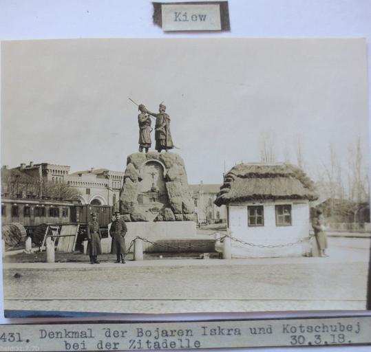 | Keywords: Ukraine, Kiew, Denkmal der Bojaren, Foto 1918.JPG en Photo of Ukraine from an album of an unknown German soldier taken during World War I de Fotos aus dem Nachlaß eines Soldaten einer Sächsischen Straßenbaukompagnie an der Ostfront Polen - Rußland - Ukraine - Weißrußland uk Світлина з облена в Ук аїні невідомим німецьким солдатом під час Пе шої світової війни 1919-01-01 00 00 http //stores ebay com/Heidi31-7-70 Unknown German soldier during and after World World I 1917 1919 other versions File Iskra and Kochubei Monument Kiev 1918 01 JPG Custom license marker 2014 10 29 PD-old-70-1996 Ukraine in World War I Life during World War I Sächsischen Straßenbaukompagnie an der Ostfront Uploaded with UploadWizard Black and white photographs of Kiev 1918 in Kiev Historical images of Kiev |