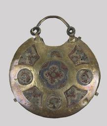 | Keywords: Ukrainian - Temple Pendant (Kolt) with Two Birds - Walters 44297 - Back.jpg Kolty singular kolt are pendants that attached to a woman's headdress at the temples The hollow space within the two concave gold disks that compose a kolt contained perfumes or scented oils The pendants were usually decorated on both sides since they could rotate as the woman walked This kolt is decorated with delicate cloisonné enamel a technique learned from Byzantine masters starting in the late 10th century Kolty were frequently worn at wedding ceremonies; the lilies center birds and seeds that fleck the birds' breasts are all symbols of fertility The bird is also an image retained from Russia's pagan past century 12 Medieval gold cloisonné enamel cm 4 7 4 8 0 9 accession number 44 297 11357 Henry Walters Baltimore date and mode of acquisition unknown Walters Art Museum Henry Walters Acquired by Henry Walters Objects of Adornment Five Thousand Years of Jewelry from the Walters Art Gallery Baltimore Cooper-Hewitt National Design Museum New York; Chrysler Museum of Art Norfolk; Carnegie Museum of Art Pittsburgh; San Antonio Museum of Art San Antonio; Philbrook Museum of Art Tulsa; Honolulu Academy of Arts Honolulu; New Orleans Museum of Art New Orleans; Milwaukee Art Museum Milwaukee; Minneapolis Institute of Arts Minneapolis; Toledo Museum of Art Toledo; The John and Mable Ringling Museum of Art Sarasota 1984-1987 Jewelry from the Walters Art Museum and the Zucker Family Collection The Walters Art Gallery Baltimore 1987 Russian Enamels The Walters Art Gallery Baltimore 1996-1997 Bedazzled 5 000 Years of Jewelry from the Walters Art Museum Frist Center for the Visual Arts Nashville; The John and Mable Ringling Museum of Art Sarasota; The Walters Art Museum Baltimore 2006-2009 Early Christian and Byzantine Art Baltimore Museum of Art Baltimore 1947 Russian Art Icons and Decorative Arts from the Origin to the Twentieth Century The Walters Art Gallery Baltimore 1959-1960 Jewelry - Ancient to Modern The Walters Art Gallery Baltimore 1979-1980 Bedazzled 5 000 Years of Jewelry El Paso Museum of Art El Paso 2010 place of origin Ukraine Walters Art Museum license Byzantine and Early Russian art in the Walters Art Museum kolty Jewellery in the Walters Art Museum Media contributed by the Walters Art Museum needs category review Jewellery of Kievan Rus |