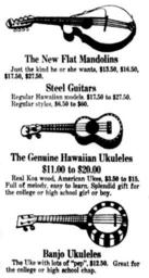 | Keywords: Ukulele, Mandolins, Banjos.jpg en George E K Awai and his Royal Hawaiian Quartet popularized the small guitar-like instrument when they performed at the Panama Pacific International Exposition at San Francisco in 1915 From then on to the early 1920s the ukulele became popular on the mainland United States Flat mandolins ukuleles and banjo ukuleles From an ad by J W Jenkins Sons ™ Music Co Ukulele Mandolin Banjo Oklahoma City times Dec 16 1918 Page 6 http //chroniclingamerica loc gov/lccn/sn86064187/1918-12-16/ed-1/seq-6/ 1918-12-16 Chronicling America - http //chroniclingamerica loc gov/ Hawaii Digital Newspaper Project - https //hdnpblog wordpress com/ unknown other versions PD-old-70-1923 Newspaper advertising Ukulele Mandolin advertisements Portuguese guitar Koa wood instruments Hawaiian music Banjos 1910s String instruments Guitar family instruments Music stores 1918 |