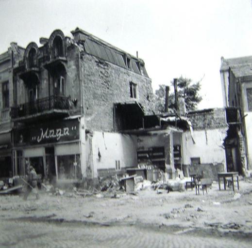 | Keywords: Ulica Marsal Tito.jpg mk Земјот есот во Скопје од 1963 година У натини на улица а шал Тито en 1963 Skopje earthquake Ruins at Marshal Tito Street DARM archive 1963-07-26 The State Archives of the Republic of Macedonia DARM Skopje Department author other versions Custom license marker 2016 05 20 Anonymous-EU Wikipedian in Residence at DARM 1963 Skopje earthquake |