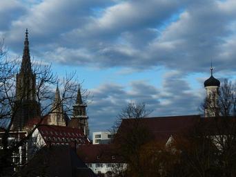 | Keywords: ulm cathedral münster ulm building church city dom cathedral architecture high steeple clouds sky covered impressive light holy trinity church spire onion dome cloud mountains white blue tower turrets onion helm great roof faith christianity |