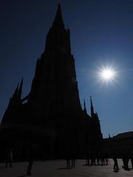 Keywords: ulm cathedral solar eclipse münster ulm building sun sunshine sonnenstern light shadow observation darkness blackout natural spectacle sky event celestial phenomenon natural phenomenon of partial sky