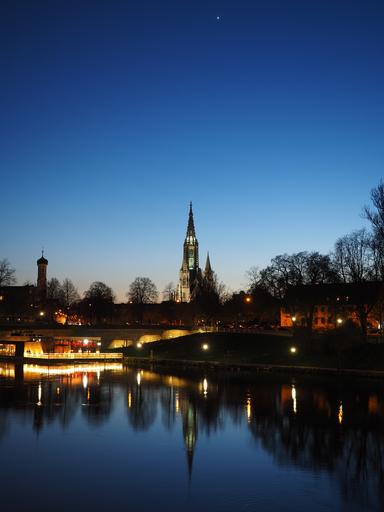 Keywords: ulm danube at night evening mood river water münster lights bank boot bank of the danube night sky venus star romantic ulm cathedral ship restaurant ship restaurant boat house restaurant ship boathouse ulm