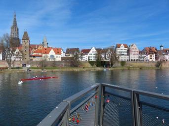 Keywords: ulm danube ulm cathedral city city view metzgerturm kayakers water sports observation deck love locks padlocks grid tourism promenade city promenade bank bank of the danube city wall