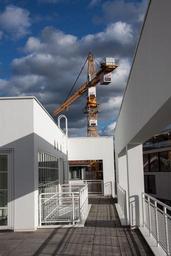 Keywords: ulm meier building star architect richard meier architect clouds sky blue crane modern