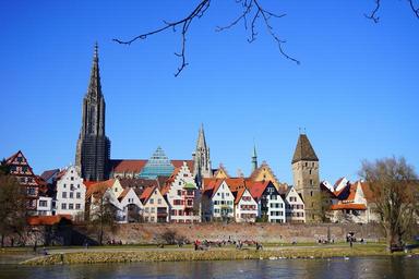 Keywords: ulm new ulm view outlook city wall downtown center city view ulm cathedral münster building dom city tower steeple church architecture cathedral old town places of interest metzgerturm danube