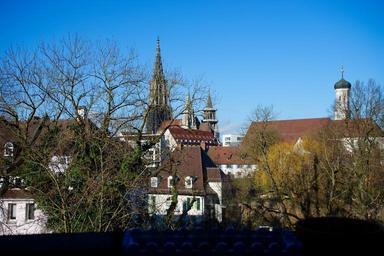 Keywords: ulm ulm cathedral city view steeple sky roofs sun act city panorama spire holy trinity church onion dome tower turrets onion helm great roof building architecture münster church city dom cathedral high