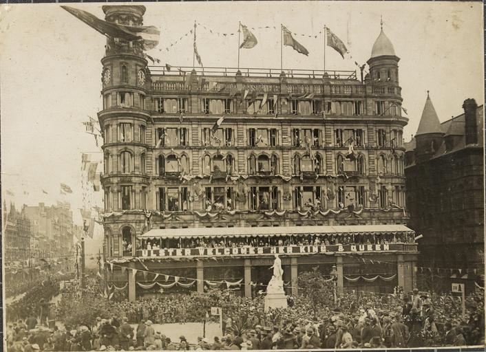 Keywords: belfast antrim ireland northern ireland northernireland ulster robinson & cleaver robinsoncleaver department store departmentstore state opening stateopening parliament flags bunting crowds clock king queen george v georgev queen mary queenmary mary of teck maryofteck wednesday 22nd june 1921 1920s twenties 20th century 20thcentury w.d. hogan wdhogan hogan-wilson collection hoganwilsoncollection national library of ireland nationallibraryofireland 12:00 1200 limerick by beachcomber limerickbybeachcomber titanic memorial titanicmemorial 11:55 1155 monochrome outdoor Belfast generally, and Robinson and Cleaver Department Store in particular, en fête for the State Opening of the first Northern Ireland parliament... Photographer: W.D. Hogan Date: Wednesday, 22 June 1921 (at 11:55 or 12 noon) NLI Ref.: HOGW 184 Belfast generally, and Robinson and Cleaver Department Store in particular, en fête for the State Opening of the first Northern Ireland parliament... Photographer: W.D. Hogan Date: Wednesday, 22 June 1921 (at 11:55 or 12 noon) NLI Ref.: HOGW 184 |