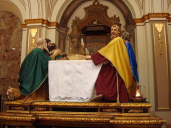 Keywords: Última Cena Paso Morado.JPG La última cena obra de Nicolás Salzillo Padre de Francisco Salzillo Paso Morado Semana Santa de Lorca own 2008-03-20 Awuachumele Paso Morado de Lorca Sculptures of the Last Supper in Spain
