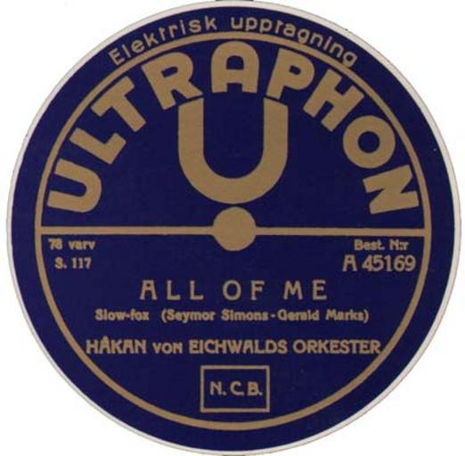 | Keywords: Ultraphon-eichwald.jpg  en Record label Ultraphon A 45169 All of me Håkan von Eichwalds orkester sv Skivetikett Ultraphon A 45169 All of me Håkan von Eichwalds orkester Håkan von Eichwalds orkester 1932 1939 LP Telestar TR 11144 1974 Ultraphon Berlin 1932 PD-old Record labels Håkan von Eichwald |