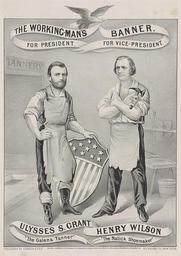 | Keywords: Ulysses Grant Henry Wilson campaign poster 1872.jpg en Ulysses Grant Henry Wilson campaign poster 1872 1872-01-01 http //www loc gov/item/2003656593/ Library of Congress Prints and Photographs Division The working-man's banner For President Ulysses S Grant The Galena Tanner For Vice-President Henry Wilson The Natick shoemaker Digital ID ds 00680 http //hdl loc gov/loc pnp/ds 00680; cph 3a07415 http //hdl loc gov/loc pnp/cph 3a07415 Library of Congress Catalog Number 2003656593 Reproduction Number LC-DIG-ds-00680 digital file from original item LC-USZ62-3983 b w film copy neg Currier Ives New York NY publisher other versions PD-old-70-1923 Engravings of Ulysses S Grant Uploaded with UploadWizard Taken with Phase One P65+ |