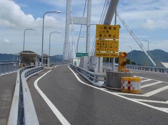 Keywords: Umashima-plate.JPG Warning sign Islanders only; No entry to ordinary vehicles at Umashima Interchange 馬島インターチェンジ流出路手前の警告標識 Own melkul 2009-08-07 Road signs in Japan Umashima Interchange Umashima Bus Stop