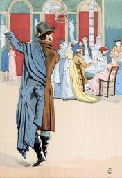| Keywords: Un salon de Frascati, Paris, 1800.jpg Artwork This plate depicts a group of people at Frascati's The man in the foreground is plainly dressed in dark colors while pastels are favored by the women Frascati's was a cafe in Paris described by the text as 'A stream of human beauty' as the expression of the period has it was still to be seen flowing through the galleries of Greek and Roman antiquities spreading through the porticos into the saloons and smaller chambers pouring and winding along the garden alleys and disappearing at last into the kiosks where it was lost to sight The great mirror at the end of the garden reflected as in a wonderful prismatic vision the surging crowd of veiled or turbaned heads of ever-changing couples each whispering and fondly clasped; while farther off seated at tables in the open air thirsty nymphs called for creams and tutti frutti and all the various iced compounds then so eagerly consumed 1898 colored plate 10 x 15 cm Institution Brown University Library object history exhibition history credit line Published in Octave Uzanne Fashion in Paris the various phases of feminine taste and aesthetics from 1797 to 1897 London William Heinemann 1898 accession number 1145807997499275 PD-old Les modes de Paris 014 Images of Paris from the Brown University Library 1800 in Paris Fashion in 1800 Café Frascati Paris |
