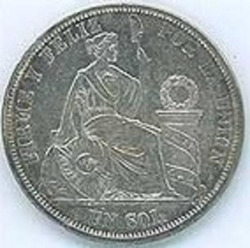 Keywords: Un Sol de Plata cara.jpg Moneda de plata que es parte de mi colección Fue la moneda oficial de Perú entre 1863 y 1897 2007-03-22 own assumed Ernesto Linares Coins of Peru Obverses