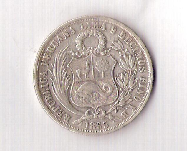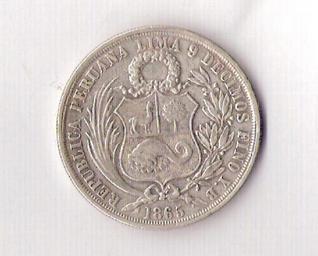 Keywords: Un Sol de Plata sello.jpg 2007-04-11 own assumed Ernesto Linares Coins of Peru 1865 coins