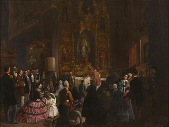 | Keywords: Una misa, de Francisco Cabral y Aguado (Museo del Romanticismo de Madrid).jpg La obra representa la celebración de una Eucaristía a mediados del siglo XIX en el interior de una iglesia española 1863 oil on canvas Size cm 119 89 Institution Museo del Romanticismo http //ceres mcu es/pages/Main accession number CE7186 http //ceres mcu es/pages/Main PD-old-100 Eucharist in art Francisco Cabral y Aguado Bejarano Paintings in the Museo del Romanticismo de Madrid 1863 paintings in Spain | ||||