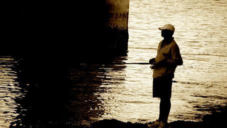 Keywords: cc0 no copyright nocopyright outdoor monochrome water serene Another person fishing, from the other end of the bridge. Another person fishing, from the other end of the bridge.