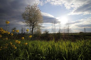 Keywords: unfinished nature sun flower tree rhine valley landscape meadow light clouds plant sky back light