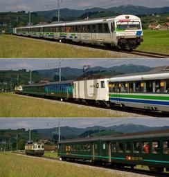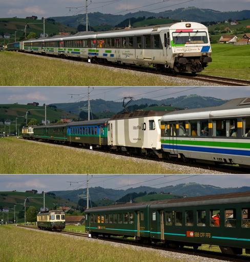 | Keywords: Ungekuppelter Schubdienst SOB.jpg en Uncoupled BDe 4/4 electric multiple unit pushing and separating from the Voralpenexpress on the incline between Biberbrugg and Altmatt The Voralpenexpress normally only consists of the first five coaches and the white Re 456 locomotive; the three green coaches are supplemental coaches which make the train to heavy to be hauled by the Re 456 alone in the 5 grade de Ein ungekuppelter BDe 4/4-Triebwagen schiebt bzw trennt sich vom Voralpenexpress zwischen Biberbrugg und Altmatt Der Voralpenexpress besteht normalerweise nur aus den ersten fünf Waggons und der weissen Re 456; die drei günen Wagen sind Zusatzwagen die den Zug hier in 5 Steigung zu schwer machen als dass er von der Re 456 alleine befördert werden könnte own http //www bahnbilder ch/travelogue/49 Kabelleger / David Gubler http //www bahnbilder ch 2008-06-19 Rail vehicles of Südostbahn and predecessors Bahnbilder ch SLM Re 456 KTU BDe 4/4 Voralpen-Express Advertisements on locomotives of Switzerland |