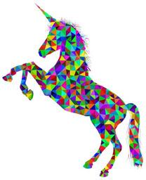 Keywords: unicorn horn horse equine animal mythical fictional fairy tale imaginary colorful prismatic chromatic rainbow abstract geometric art polygons triangles