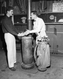 | Keywords: florida state library and archives of florida statelibraryandarchivesofflorida unidentified heaters winter cold golf courses golfcourses pro shops proshops tallahassee country club tallahasseecountryclub 1950s tallahassee leon county leoncounty tallahassee democrat (tallahassee, florida newspaper) tallahasseedemocrattallahasseefloridanewspaper golf clubs golfclubs golf equipment golfequipment golf golfers blackandwhite monochrome black and white Persistent URL: floridamemory.com/items/show/259850 Local call number: TD00046 Title: Unidentified men warming up in the Tallahassee Country Club pro shop Date: 1953 Physical descrip: 1 photonegative - b&w - 5 x 4 in. Series Title: Tallahassee Democrat Collection Repository: State Library and Archives of Florida 500 S. Bronough St., Tallahassee, FL, 32399-0250 USA, Contact: 850.245.6700, Archives@dos.myflorida.com Persistent URL: floridamemory.com/items/show/259850 Local call number: TD00046 Title: Unidentified men warming up in the Tallahassee Country Club pro shop Date: 1953 Physical descrip: 1 photonegative - b&w - 5 x 4 in. Series Title: Tallahassee Democrat Collection Repository: State Library and Archives of Florida 500 S. Bronough St., Tallahassee, FL, 32399-0250 USA, Contact: 850.245.6700, Archives@dos.myflorida.com |