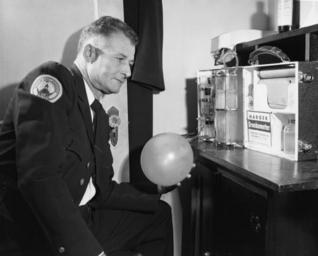| Keywords: florida state library and archives of florida statelibraryandarchivesofflorida unidentified police officers policeofficers law enforcement lawenforcement drunk driving drunkdriving harger drunkometer (breathalyzer) hargerdrunkometerbreathalyzer breathalyzers tallahassee tallahassee democrat (tallahassee, florida newspaper) tallahasseedemocrattallahasseefloridanewspaper leon county leoncounty 1950s uniforms sobriety testing equipment sobrietytestingequipment blackandwhite monochrome black and white Persistent URL: floridamemory.com/items/show/259851 Local call number: TD00045 Title: Unidentified police officer with a Harger "Drunkometer" breathalyzer in Tallahassee, Florida Date: 1953 Physical descrip: 1 photonegative - b&w - 4 x 5 in. Series Title: Tallahassee Democrat Collection Repository: State Library and Archives of Florida 500 S. Bronough St., Tallahassee, FL, 32399-0250 USA, Contact: 850.245.6700, Archives@dos.myflorida.com Persistent URL: floridamemory.com/items/show/259851 Local call number: TD00045 Title: Unidentified police officer with a Harger "Drunkometer" breathalyzer in Tallahassee, Florida Date: 1953 Physical descrip: 1 photonegative - b&w - 4 x 5 in. Series Title: Tallahassee Democrat Collection Repository: State Library and Archives of Florida 500 S. Bronough St., Tallahassee, FL, 32399-0250 USA, Contact: 850.245.6700, Archives@dos.myflorida.com |
