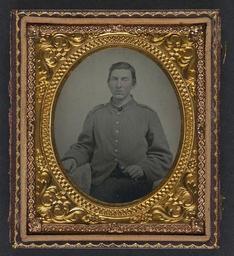 | Keywords: library of congress libraryofcongress dc:identifier=http://hdl.loc.gov/loc.pnp/ppmsca.27175 dc:identifier=httphdllocgovlocpnpppmsca27175 xmlns:dc=http://purl.org/dc/elements/1.1/ xmlns:dc=httppurlorgdcelements11 people picture frame photo border round [Unidentified soldier in Confederate shell jacket with "I" buttons] [between 1861 and 1865] 1 photograph : sixth-plate ambrotype, hand-colored ; 9.4 x 8.2 cm (case) Notes: Title devised by Library staff. Case: Rinhart, no. 93. Gift; Tom Liljenquist; 2010; (DLC/PP-2010:105). Purchased from: Edwards Military Antiques & Rare Collectibles, Minneola, Florida, 2002. Subjects: Confederate States of America.--Army--People--1860-1870. Soldiers--Confederate--1860-1870. Military uniforms--Confederate--1860-1870. United States--History--Civil War, 1861-1865--Military personnel--Confederate. Format: Portrait photographs--1860-1870. Ambrotypes--Hand-colored--1860-1870. Rights Info: No known restrictions on publication. Repository: Library of Congress, Prints and Photographs Division, Washington, D.C. 20540 USA, hdl.loc.gov/loc.pnp/pp.print Part Of: Ambrotype/Tintype filing series (Library of Congress) (DLC) 2010650518 Liljenquist Family collection (Library of Congress) (DLC) 2010650519 More information about this collection is available at hdl.loc.gov/loc.pnp/pp.lilj Persistent URL: hdl.loc.gov/loc.pnp/ppmsca.27175 Call Number: AMB/TIN no. 2322 [Unidentified soldier in Confederate shell jacket with "I" buttons] [between 1861 and 1865] 1 photograph : sixth-plate ambrotype, hand-colored ; 9.4 x 8.2 cm (case) Notes: Title devised by Library staff. Case: Rinhart, no. 93. Gift; Tom Liljenquist; 2010; (DLC/PP-2010:105). Purchased from: Edwards Military Antiques & Rare Collectibles, Minneola, Florida, 2002. Subjects: Confederate States of America.--Army--People--1860-1870. Soldiers--Confederate--1860-1870. Military uniforms--Confederate--1860-1870. United States--History--Civil War, 1861-1865--Military personnel--Confederate. Format: Portrait photographs--1860-1870. Ambrotypes--Hand-colored--1860-1870. Rights Info: No known restrictions on publication. Repository: Library of Congress, Prints and Photographs Division, Washington, D.C. 20540 USA, hdl.loc.gov/loc.pnp/pp.print Part Of: Ambrotype/Tintype filing series (Library of Congress) (DLC) 2010650518 Liljenquist Family collection (Library of Congress) (DLC) 2010650519 More information about this collection is available at hdl.loc.gov/loc.pnp/pp.lilj Persistent URL: hdl.loc.gov/loc.pnp/ppmsca.27175 Call Number: AMB/TIN no. 2322 |