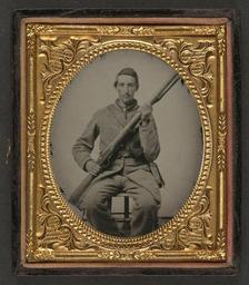 | Keywords: library of congress libraryofcongress dc:identifier=http://hdl.loc.gov/loc.pnp/ppmsca.27196 dc:identifier=httphdllocgovlocpnpppmsca27196 xmlns:dc=http://purl.org/dc/elements/1.1/ xmlns:dc=httppurlorgdcelements11 u.s. civil war uscivilwar american civil war americancivilwar the civil war thecivilwar civil war civilwar war between the states warbetweenthestates confederate states of america confederatestatesofamerica c.s.a. csa the confederacy theconfederacy confederacy confederate the south thesouth rebel rebels soldier gun musket picture frame people indoor photo border [Unidentified soldier in Confederate uniform with musket] [between 1861 and 1865] 1 photograph : sixth-plate ambrotype, hand-colored ; 9.4 x 8.1 cm (case) Notes: Title devised by Library staff. Case: Leather diamond geometric design. Additional information in collections file. Deposit; Tom Liljenquist; 2010; (D 062). Purchased from: The Historical Shop, Metairie, Louisiana, 2010. Published in: Turner, William A. Even more Confederate faces. Gaithersburg, Md.: Olde Soldier Books, Inc.,1983, p. 201. Subjects: Confederate States of America.--Army--People--1860-1870. Soldiers--Confederate--1860-1870. Military uniforms--Confederate--1860-1870. Rifles--1860-1870. United States--History--Civil War, 1861-1865--Military personnel--Confederate. Format: Portrait photographs--1860-1870. Ambrotypes--Hand-colored--1860-1870. Rights Info: No known restrictions on publication. Repository: Library of Congress, Prints and Photographs Division, Washington, D.C. 20540 USA, hdl.loc.gov/loc.pnp/pp.print Part Of: Ambrotype/Tintype filing series (Library of Congress) (DLC) 2010650518 Liljenquist Family collection (Library of Congress) (DLC) 2010650519 More information about this collection is available at hdl.loc.gov/loc.pnp/pp.lilj Persistent URL: hdl.loc.gov/loc.pnp/ppmsca.27196 Call Number: AMB/TIN no. 2343 [Unidentified soldier in Confederate uniform with musket] [between 1861 and 1865] 1 photograph : sixth-plate ambrotype, hand-colored ; 9.4 x 8.1 cm (case) Notes: Title devised by Library staff. Case: Leather diamond geometric design. Additional information in collections file. Deposit; Tom Liljenquist; 2010; (D 062). Purchased from: The Historical Shop, Metairie, Louisiana, 2010. Published in: Turner, William A. Even more Confederate faces. Gaithersburg, Md.: Olde Soldier Books, Inc.,1983, p. 201. Subjects: Confederate States of America.--Army--People--1860-1870. Soldiers--Confederate--1860-1870. Military uniforms--Confederate--1860-1870. Rifles--1860-1870. United States--History--Civil War, 1861-1865--Military personnel--Confederate. Format: Portrait photographs--1860-1870. Ambrotypes--Hand-colored--1860-1870. Rights Info: No known restrictions on publication. Repository: Library of Congress, Prints and Photographs Division, Washington, D.C. 20540 USA, hdl.loc.gov/loc.pnp/pp.print Part Of: Ambrotype/Tintype filing series (Library of Congress) (DLC) 2010650518 Liljenquist Family collection (Library of Congress) (DLC) 2010650519 More information about this collection is available at hdl.loc.gov/loc.pnp/pp.lilj Persistent URL: hdl.loc.gov/loc.pnp/ppmsca.27196 Call Number: AMB/TIN no. 2343 |