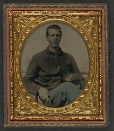 | Keywords: library of congress libraryofcongress dc:identifier=http://hdl.loc.gov/loc.pnp/ppmsca.26999 dc:identifier=httphdllocgovlocpnpppmsca26999 xmlns:dc=http://purl.org/dc/elements/1.1/ xmlns:dc=httppurlorgdcelements11 people picture frame photo border [Unidentified soldier in Union uniform with 15th New York Engineer Regiment forage cap] [between 1861 and 1865] 1 photograph : sixth-plate tintype, hand-colored ; 9.3 x 8 cm (case) Notes: Title devised by Library staff. Case: Leather geometric circular design. Additional information in collections file. Gift; Tom Liljenquist; 2010; (DLC/PP-2010:105). Purchased from: The Horse Soldier, Cashtown, Pa., 2007. Subjects: United States.--Army.--New York Engineers Regiment, 15th (1861-1865)--People--1860-1870. Soldiers--Union--1860-1870. Military uniforms--Union--1860-1870. United States--History--Civil War, 1861-1865--Military personnel--Union. Format: Portrait photographs--1860-1870. Tintypes--Hand-colored--1860-1870. Rights Info: No known restrictions on publication. Repository: Library of Congress, Prints and Photographs Division, Washington, D.C. 20540 USA, hdl.loc.gov/loc.pnp/pp.print Part Of: Ambrotype/Tintype filing series (Library of Congress) (DLC) 2010650518 Liljenquist Family collection (Library of Congress) (DLC) 2010650519 More information about this collection is available at hdl.loc.gov/loc.pnp/pp.lilj Persistent URL: hdl.loc.gov/loc.pnp/ppmsca.26999 Call Number: AMB/TIN no. 2144 [Unidentified soldier in Union uniform with 15th New York Engineer Regiment forage cap] [between 1861 and 1865] 1 photograph : sixth-plate tintype, hand-colored ; 9.3 x 8 cm (case) Notes: Title devised by Library staff. Case: Leather geometric circular design. Additional information in collections file. Gift; Tom Liljenquist; 2010; (DLC/PP-2010:105). Purchased from: The Horse Soldier, Cashtown, Pa., 2007. Subjects: United States.--Army.--New York Engineers Regiment, 15th (1861-1865)--People--1860-1870. Soldiers--Union--1860-1870. Military uniforms--Union--1860-1870. United States--History--Civil War, 1861-1865--Military personnel--Union. Format: Portrait photographs--1860-1870. Tintypes--Hand-colored--1860-1870. Rights Info: No known restrictions on publication. Repository: Library of Congress, Prints and Photographs Division, Washington, D.C. 20540 USA, hdl.loc.gov/loc.pnp/pp.print Part Of: Ambrotype/Tintype filing series (Library of Congress) (DLC) 2010650518 Liljenquist Family collection (Library of Congress) (DLC) 2010650519 More information about this collection is available at hdl.loc.gov/loc.pnp/pp.lilj Persistent URL: hdl.loc.gov/loc.pnp/ppmsca.26999 Call Number: AMB/TIN no. 2144 |