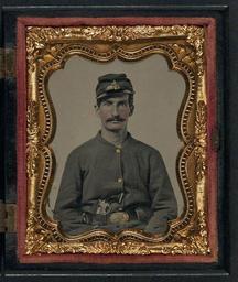 | Keywords: library of congress libraryofcongress dc:identifier=http://hdl.loc.gov/loc.pnp/ppmsca.30607 dc:identifier=httphdllocgovlocpnpppmsca30607 xmlns:dc=http://purl.org/dc/elements/1.1/ xmlns:dc=httppurlorgdcelements11 u.s. civil war uscivilwar american civil war americancivilwar the civil war thecivilwar civil war civilwar war between the states warbetweenthestates united states of america unitedstatesofamerica u.s.a. usa the union theunion union the north thenorth yankee yankees soldier gun pistol revolver colt revolver coltrevolver picture frame people photo border [Unidentified soldier in Union sack coat and Company C forage cap with Colt revolver] [between 1861 and 1865] 1 photograph : ninth-plate ambrotype, hand-colored ; 7.7 x 6.4 cm (case) Notes: Title devised by Library staff. Case: Berg, no. 1-154. Additional information in collections file. Deposit; Tom Liljenquist, 2010; (D 062) Subjects: United States.--Army.--People--1860-1870. Soldiers--Union--1860-1870. Military uniforms--Union--1860-1870. Handguns--1860-1870. United States--History--Civil War, 1861-1865--Military personnel--Union. Format: Portrait photographs--1860-1870. Ambrotypes--Hand-colored--1860-1870. Rights Info: No known restrictions on publication. Repository: Library of Congress, Prints and Photographs Division, Washington, D.C. 20540 USA, hdl.loc.gov/loc.pnp/pp.print Part Of: Ambrotype/Tintype filing series (Library of Congress) (DLC) 2010650518 Liljenquist Family collection (Library of Congress) (DLC) 2010650519 More information about this collection is available at hdl.loc.gov/loc.pnp/pp.lilj Persistent URL: hdl.loc.gov/loc.pnp/ppmsca.30607 Call Number: AMB/TIN no. 2633 [Unidentified soldier in Union sack coat and Company C forage cap with Colt revolver] [between 1861 and 1865] 1 photograph : ninth-plate ambrotype, hand-colored ; 7.7 x 6.4 cm (case) Notes: Title devised by Library staff. Case: Berg, no. 1-154. Additional information in collections file. Deposit; Tom Liljenquist, 2010; (D 062) Subjects: United States.--Army.--People--1860-1870. Soldiers--Union--1860-1870. Military uniforms--Union--1860-1870. Handguns--1860-1870. United States--History--Civil War, 1861-1865--Military personnel--Union. Format: Portrait photographs--1860-1870. Ambrotypes--Hand-colored--1860-1870. Rights Info: No known restrictions on publication. Repository: Library of Congress, Prints and Photographs Division, Washington, D.C. 20540 USA, hdl.loc.gov/loc.pnp/pp.print Part Of: Ambrotype/Tintype filing series (Library of Congress) (DLC) 2010650518 Liljenquist Family collection (Library of Congress) (DLC) 2010650519 More information about this collection is available at hdl.loc.gov/loc.pnp/pp.lilj Persistent URL: hdl.loc.gov/loc.pnp/ppmsca.30607 Call Number: AMB/TIN no. 2633 |