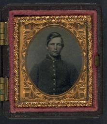 | Keywords: library of congress libraryofcongress dc:identifier=http://hdl.loc.gov/loc.pnp/ppmsca.27454 dc:identifier=httphdllocgovlocpnpppmsca27454 xmlns:dc=http://purl.org/dc/elements/1.1/ xmlns:dc=httppurlorgdcelements11 u.s. civil war uscivilwar american civil war americancivilwar the civil war thecivilwar civil war civilwar war between the states warbetweenthestates united states of america unitedstatesofamerica u.s.a. usa the union theunion union the north thenorth yankee yankees soldier picture frame people photo border [Unidentified soldier in Union uniform] [between 1861 and 1865] 1 photograph : sixteenth-plate tintype, hand-colored ; 5.2 x 4.5 cm (case) Notes: Title devised by Library staff. Case: Berg, no. 3-483. Gift; Tom Liljenquist; 2010; (DLC/PP-2010:105). Subjects: United States.--Army.--People--1860-1870. Soldiers--Union--1860-1870. Military uniforms--Union--1860-1870. United States--History--Civil War, 1861-1865--Military personnel--Union. Format: Portrait photographs--1860-1870. Tintypes--Hand-colored--1860-1870. Rights Info: No known restrictions on publication. Repository: Library of Congress, Prints and Photographs Division, Washington, D.C. 20540 USA, hdl.loc.gov/loc.pnp/pp.print Part Of: Ambrotype/Tintype filing series (Library of Congress) (DLC) 2010650518 Liljenquist Family collection (Library of Congress) (DLC) 2010650519 More information about this collection is available at hdl.loc.gov/loc.pnp/pp.lilj Persistent URL: hdl.loc.gov/loc.pnp/ppmsca.27454 Call Number: AMB/TIN no. 2583 [Unidentified soldier in Union uniform] [between 1861 and 1865] 1 photograph : sixteenth-plate tintype, hand-colored ; 5.2 x 4.5 cm (case) Notes: Title devised by Library staff. Case: Berg, no. 3-483. Gift; Tom Liljenquist; 2010; (DLC/PP-2010:105). Subjects: United States.--Army.--People--1860-1870. Soldiers--Union--1860-1870. Military uniforms--Union--1860-1870. United States--History--Civil War, 1861-1865--Military personnel--Union. Format: Portrait photographs--1860-1870. Tintypes--Hand-colored--1860-1870. Rights Info: No known restrictions on publication. Repository: Library of Congress, Prints and Photographs Division, Washington, D.C. 20540 USA, hdl.loc.gov/loc.pnp/pp.print Part Of: Ambrotype/Tintype filing series (Library of Congress) (DLC) 2010650518 Liljenquist Family collection (Library of Congress) (DLC) 2010650519 More information about this collection is available at hdl.loc.gov/loc.pnp/pp.lilj Persistent URL: hdl.loc.gov/loc.pnp/ppmsca.27454 Call Number: AMB/TIN no. 2583 |