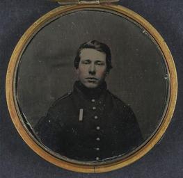 | Keywords: library of congress libraryofcongress dc:identifier=http://hdl.loc.gov/loc.pnp/ppmsca.27487 dc:identifier=httphdllocgovlocpnpppmsca27487 xmlns:dc=http://purl.org/dc/elements/1.1/ xmlns:dc=httppurlorgdcelements11 people circle round indoor [Unidentified soldier in Union uniform in locket] [between 1861 and 1865] 1 photograph : round tintype, hand-colored ; 4.6 cm diameter (case) Notes: Title devised by Library staff. Case: Metal locket of woman on rearing horse and chain. Attached to chain is 1863 one cent coin. Gift; Tom Liljenquist; 2010; (DLC/PP-2010:105). Subjects: United States.--Army.--People--1860-1870. Soldiers--Union--1860-1870. Military uniforms--Union--1860-1870. United States--History--Civil War, 1861-1865--Military personnel--Union. Format: Lockets--1860-1870. Portrait photographs--1860-1870. Tintypes--Hand-colored--1860-1870. Rights Info: No known restrictions on publication. Repository: Library of Congress, Prints and Photographs Division, Washington, D.C. 20540 USA, hdl.loc.gov/loc.pnp/pp.print Part Of: Ambrotype/Tintype filing series (Library of Congress) (DLC) 2010650518 Liljenquist Family collection (Library of Congress) (DLC) 2010650519 More information about this collection is available at hdl.loc.gov/loc.pnp/pp.lilj Persistent URL: hdl.loc.gov/loc.pnp/ppmsca.27487 Call Number: AMB/TIN no. 2610 [Unidentified soldier in Union uniform in locket] [between 1861 and 1865] 1 photograph : round tintype, hand-colored ; 4.6 cm diameter (case) Notes: Title devised by Library staff. Case: Metal locket of woman on rearing horse and chain. Attached to chain is 1863 one cent coin. Gift; Tom Liljenquist; 2010; (DLC/PP-2010:105). Subjects: United States.--Army.--People--1860-1870. Soldiers--Union--1860-1870. Military uniforms--Union--1860-1870. United States--History--Civil War, 1861-1865--Military personnel--Union. Format: Lockets--1860-1870. Portrait photographs--1860-1870. Tintypes--Hand-colored--1860-1870. Rights Info: No known restrictions on publication. Repository: Library of Congress, Prints and Photographs Division, Washington, D.C. 20540 USA, hdl.loc.gov/loc.pnp/pp.print Part Of: Ambrotype/Tintype filing series (Library of Congress) (DLC) 2010650518 Liljenquist Family collection (Library of Congress) (DLC) 2010650519 More information about this collection is available at hdl.loc.gov/loc.pnp/pp.lilj Persistent URL: hdl.loc.gov/loc.pnp/ppmsca.27487 Call Number: AMB/TIN no. 2610 |