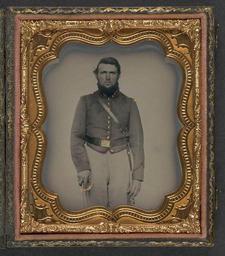 | Keywords: library of congress libraryofcongress dc:identifier=http://hdl.loc.gov/loc.pnp/ppmsca.26866 dc:identifier=httphdllocgovlocpnpppmsca26866 xmlns:dc=http://purl.org/dc/elements/1.1/ xmlns:dc=httppurlorgdcelements11 picture frame people photo border [Unidentified soldier in Union artillery uniform with red piping holding sword] [between 1861 and 1865] 1 photograph : sixth-plate tintype, hand-colored ; 9.3 x 8.0 cm (case) Notes: Title devised by Library staff. Case: Leather geometric design. Gift; Tom Liljenquist; 2010; (DLC/PP-2010:105). Subjects: United States.--Army--People--1860-1870. Soldiers--Union--1860-1870. Military uniforms--Union--1860-1870. United States--History--Civil War, 1861-1865--Military personnel--Union. Format: Portrait photographs--1860-1870. Tintypes--Hand-colored--1860-1870. Rights Info: No known restrictions on publication. Repository: Library of Congress, Prints and Photographs Division, Washington, D.C. 20540 USA, hdl.loc.gov/loc.pnp/pp.print Part Of: Ambrotype/Tintype filing series (Library of Congress) (DLC) 2010650518 Liljenquist Family collection (Library of Congress) (DLC) 2010650519 More information about this collection is available at hdl.loc.gov/loc.pnp/pp.lilj Persistent URL: hdl.loc.gov/loc.pnp/ppmsca.26866 Call Number: AMB/TIN no. 2015 [Unidentified soldier in Union artillery uniform with red piping holding sword] [between 1861 and 1865] 1 photograph : sixth-plate tintype, hand-colored ; 9.3 x 8.0 cm (case) Notes: Title devised by Library staff. Case: Leather geometric design. Gift; Tom Liljenquist; 2010; (DLC/PP-2010:105). Subjects: United States.--Army--People--1860-1870. Soldiers--Union--1860-1870. Military uniforms--Union--1860-1870. United States--History--Civil War, 1861-1865--Military personnel--Union. Format: Portrait photographs--1860-1870. Tintypes--Hand-colored--1860-1870. Rights Info: No known restrictions on publication. Repository: Library of Congress, Prints and Photographs Division, Washington, D.C. 20540 USA, hdl.loc.gov/loc.pnp/pp.print Part Of: Ambrotype/Tintype filing series (Library of Congress) (DLC) 2010650518 Liljenquist Family collection (Library of Congress) (DLC) 2010650519 More information about this collection is available at hdl.loc.gov/loc.pnp/pp.lilj Persistent URL: hdl.loc.gov/loc.pnp/ppmsca.26866 Call Number: AMB/TIN no. 2015 |