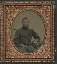 | Keywords: library of congress libraryofcongress dc:identifier=http://hdl.loc.gov/loc.pnp/ppmsca.26945 dc:identifier=httphdllocgovlocpnpppmsca26945 xmlns:dc=http://purl.org/dc/elements/1.1/ xmlns:dc=httppurlorgdcelements11 picture frame people photo border round ancient [Unidentified soldier in Union infantry corporal's uniform sitting with arm resting on table] [between 1861 and 1865] 1 photograph : sixth-plate tintype, hand-colored ; 9.3 x 8.1 cm (case) Notes: Title devised by Library staff. Case: Rinhart, no. 137. Gift; Tom Liljenquist; 2010; (DLC/PP-2010:105). Subjects: United States.--Army--People--1860-1870. Soldiers--Union--1860-1870. Military uniforms--Union--1860-1870. United States--History--Civil War, 1861-1865--Military personnel--Union. Format: Portrait photographs--1860-1870. Tintypes--Hand-colored--1860-1870. Rights Info: No known restrictions on publication. Repository: Library of Congress, Prints and Photographs Division, Washington, D.C. 20540 USA, hdl.loc.gov/loc.pnp/pp.print Part Of: Ambrotype/Tintype filing series (Library of Congress) (DLC) 2010650518 Liljenquist Family collection (Library of Congress) (DLC) 2010650519 More information about this collection is available at hdl.loc.gov/loc.pnp/pp.lilj Persistent URL: hdl.loc.gov/loc.pnp/ppmsca.26945 Call Number: AMB/TIN no. 2093 [Unidentified soldier in Union infantry corporal's uniform sitting with arm resting on table] [between 1861 and 1865] 1 photograph : sixth-plate tintype, hand-colored ; 9.3 x 8.1 cm (case) Notes: Title devised by Library staff. Case: Rinhart, no. 137. Gift; Tom Liljenquist; 2010; (DLC/PP-2010:105). Subjects: United States.--Army--People--1860-1870. Soldiers--Union--1860-1870. Military uniforms--Union--1860-1870. United States--History--Civil War, 1861-1865--Military personnel--Union. Format: Portrait photographs--1860-1870. Tintypes--Hand-colored--1860-1870. Rights Info: No known restrictions on publication. Repository: Library of Congress, Prints and Photographs Division, Washington, D.C. 20540 USA, hdl.loc.gov/loc.pnp/pp.print Part Of: Ambrotype/Tintype filing series (Library of Congress) (DLC) 2010650518 Liljenquist Family collection (Library of Congress) (DLC) 2010650519 More information about this collection is available at hdl.loc.gov/loc.pnp/pp.lilj Persistent URL: hdl.loc.gov/loc.pnp/ppmsca.26945 Call Number: AMB/TIN no. 2093 |