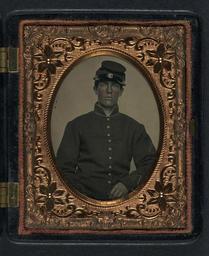 | Keywords: library of congress libraryofcongress dc:identifier=http://hdl.loc.gov/loc.pnp/ppmsca.27343 dc:identifier=httphdllocgovlocpnpppmsca27343 xmlns:dc=http://purl.org/dc/elements/1.1/ xmlns:dc=httppurlorgdcelements11 u.s. civil war uscivilwar american civil war americancivilwar the civil war thecivilwar civil war civilwar war between the states warbetweenthestates united states of america unitedstatesofamerica u.s.a. usa the union theunion union the north thenorth yankee yankees soldier photo border picture frame [Unidentified soldier in Union uniform and forage cap] [between 1861 and 1865] 1 photograph : ninth-plate ambrotype, hand-colored ; 7.5 x 6.2 cm (case) Notes: Title devised by Library staff. Case: Berg, no. 3-354. Gift; Tom Liljenquist; 2010; (DLC/PP-2010:105). Subjects: United States.--Army--People--1860-1870. Soldiers--Union--1860-1870. Military uniforms--Union--1860-1870. United States--History--Civil War, 1861-1865--Military personnel--Union. Format: Portrait photographs--1860-1870. Ambrotypes--Hand-colored--1860-1870. Rights Info: No known restrictions on publication. Repository: Library of Congress, Prints and Photographs Division, Washington, D.C. 20540 USA, hdl.loc.gov/loc.pnp/pp.print Part Of: Ambrotype/Tintype filing series (Library of Congress) (DLC) 2010650518 Liljenquist Family collection (Library of Congress) (DLC) 2010650519 More information about this collection is available at hdl.loc.gov/loc.pnp/pp.lilj Persistent URL: hdl.loc.gov/loc.pnp/ppmsca.27343 Call Number: AMB/TIN no. 2480 [Unidentified soldier in Union uniform and forage cap] [between 1861 and 1865] 1 photograph : ninth-plate ambrotype, hand-colored ; 7.5 x 6.2 cm (case) Notes: Title devised by Library staff. Case: Berg, no. 3-354. Gift; Tom Liljenquist; 2010; (DLC/PP-2010:105). Subjects: United States.--Army--People--1860-1870. Soldiers--Union--1860-1870. Military uniforms--Union--1860-1870. United States--History--Civil War, 1861-1865--Military personnel--Union. Format: Portrait photographs--1860-1870. Ambrotypes--Hand-colored--1860-1870. Rights Info: No known restrictions on publication. Repository: Library of Congress, Prints and Photographs Division, Washington, D.C. 20540 USA, hdl.loc.gov/loc.pnp/pp.print Part Of: Ambrotype/Tintype filing series (Library of Congress) (DLC) 2010650518 Liljenquist Family collection (Library of Congress) (DLC) 2010650519 More information about this collection is available at hdl.loc.gov/loc.pnp/pp.lilj Persistent URL: hdl.loc.gov/loc.pnp/ppmsca.27343 Call Number: AMB/TIN no. 2480 |