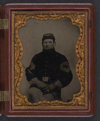| Keywords: library of congress libraryofcongress dc:identifier=http://hdl.loc.gov/loc.pnp/ppmsca.27144 dc:identifier=httphdllocgovlocpnpppmsca27144 xmlns:dc=http://purl.org/dc/elements/1.1/ xmlns:dc=httppurlorgdcelements11 u.s. civil war uscivilwar american civil war americancivilwar the civil war thecivilwar civil war civilwar war between the states warbetweenthestates united states of america unitedstatesofamerica u.s.a. usa the union theunion union the north thenorth yankee yankees soldier sergeant non-commission officer noncommissionofficer nco gauntlet gauntlets picture frame people indoor photo border [Unidentified Union sargeant major's uniform with gauntlets and forage cap of the 206th Pennsylvania Volunteers Regiment] [between 1864 and 1865] 1 photograph : quarter-plate tintype; 12.5 x 10.2 cm (case) Notes: Title devised by Library staff. Case: Berg, no. 3-25. Gift; Tom Liljenquist; 2010; (DLC/PP-2010:105). Subjects: United States.--Army.--Pennsylvania Infantry Regiment, 206th (1864-1865)--People. Soldiers--Union--1860-1870. Military uniforms--Union--1860-1870. United States--History--Civil War, 1861-1865--Military personnel--Union. Format: Portrait photographs--1860-1870. Tintypes--1860-1870. Rights Info: No known restrictions on publication. Repository: Library of Congress, Prints and Photographs Division, Washington, D.C. 20540 USA, hdl.loc.gov/loc.pnp/pp.print Part Of: Ambrotype/Tintype filing series (Library of Congress) (DLC) 2010650518 Liljenquist Family collection (Library of Congress) (DLC) 2010650519 More information about this collection is available at hdl.loc.gov/loc.pnp/pp.lilj Persistent URL: hdl.loc.gov/loc.pnp/ppmsca.27144 Call Number: AMB/TIN no. 2291 [Unidentified Union sargeant major's uniform with gauntlets and forage cap of the 206th Pennsylvania Volunteers Regiment] [between 1864 and 1865] 1 photograph : quarter-plate tintype; 12.5 x 10.2 cm (case) Notes: Title devised by Library staff. Case: Berg, no. 3-25. Gift; Tom Liljenquist; 2010; (DLC/PP-2010:105). Subjects: United States.--Army.--Pennsylvania Infantry Regiment, 206th (1864-1865)--People. Soldiers--Union--1860-1870. Military uniforms--Union--1860-1870. United States--History--Civil War, 1861-1865--Military personnel--Union. Format: Portrait photographs--1860-1870. Tintypes--1860-1870. Rights Info: No known restrictions on publication. Repository: Library of Congress, Prints and Photographs Division, Washington, D.C. 20540 USA, hdl.loc.gov/loc.pnp/pp.print Part Of: Ambrotype/Tintype filing series (Library of Congress) (DLC) 2010650518 Liljenquist Family collection (Library of Congress) (DLC) 2010650519 More information about this collection is available at hdl.loc.gov/loc.pnp/pp.lilj Persistent URL: hdl.loc.gov/loc.pnp/ppmsca.27144 Call Number: AMB/TIN no. 2291 |