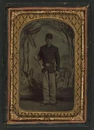 | Keywords: library of congress libraryofcongress dc:identifier=http://hdl.loc.gov/loc.pnp/ppmsca.27415 dc:identifier=httphdllocgovlocpnpppmsca27415 xmlns:dc=http://purl.org/dc/elements/1.1/ xmlns:dc=httppurlorgdcelements11 picture frame photo border [Unidentified young soldier in Union uniform and infantry forage cap with sheathed musicans' sword and bugle in front of painted backdrop showing palm trees] [between 1861 and 1865] 1 photograph : carte de visite-plate tintype, hand-colored ; 10.7 x 7.5 cm (case) Notes: Title devised by Library staff. Case: Leather cross and scroll design Gift; Tom Liljenquist; 2010; (DLC/PP-2010:105). Subjects: United States.--Army.--People--1860-1870. Soldiers--Union--1860-1870. Military uniforms--Union--1860-1870. United States--History--Civil War, 1861-1865--Military personnel--Union. Format: Portrait photographs--1860-1870. Tintypes--Hand-colored--1860-1870. Rights Info: No known restrictions on publication. Repository: Library of Congress, Prints and Photographs Division, Washington, D.C. 20540 USA, hdl.loc.gov/loc.pnp/pp.print Part Of: Ambrotype/Tintype filing series (Library of Congress) (DLC) 2010650518 Liljenquist Family collection (Library of Congress) (DLC) 2010650519 More information about this collection is available at hdl.loc.gov/loc.pnp/pp.lilj Persistent URL: hdl.loc.gov/loc.pnp/ppmsca.27415 Call Number: AMB/TIN no. 2550 [Unidentified young soldier in Union uniform and infantry forage cap with sheathed musicans' sword and bugle in front of painted backdrop showing palm trees] [between 1861 and 1865] 1 photograph : carte de visite-plate tintype, hand-colored ; 10.7 x 7.5 cm (case) Notes: Title devised by Library staff. Case: Leather cross and scroll design Gift; Tom Liljenquist; 2010; (DLC/PP-2010:105). Subjects: United States.--Army.--People--1860-1870. Soldiers--Union--1860-1870. Military uniforms--Union--1860-1870. United States--History--Civil War, 1861-1865--Military personnel--Union. Format: Portrait photographs--1860-1870. Tintypes--Hand-colored--1860-1870. Rights Info: No known restrictions on publication. Repository: Library of Congress, Prints and Photographs Division, Washington, D.C. 20540 USA, hdl.loc.gov/loc.pnp/pp.print Part Of: Ambrotype/Tintype filing series (Library of Congress) (DLC) 2010650518 Liljenquist Family collection (Library of Congress) (DLC) 2010650519 More information about this collection is available at hdl.loc.gov/loc.pnp/pp.lilj Persistent URL: hdl.loc.gov/loc.pnp/ppmsca.27415 Call Number: AMB/TIN no. 2550 |
