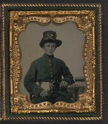 | Keywords: library of congress libraryofcongress dc:identifier=http://hdl.loc.gov/loc.pnp/ppmsca.27070 dc:identifier=httphdllocgovlocpnpppmsca27070 xmlns:dc=http://purl.org/dc/elements/1.1/ xmlns:dc=httppurlorgdcelements11 tablecloth people picture frame photo border surreal [Unidentified young soldier in Union uniform and plumed Hardee hat with plain gauntlets and revolver sitting next to table with books] [between 1861 and 1865] 1 photograph : sixth-plate ambrotype, hand-colored ; 9.4 x 8.1 cm (case) Notes: Title devised by Library staff. Case: Rinhart, no. 141. Photograph shows Infantry insignia on Hardee hat. Gift; Tom Liljenquist; 2010; (DLC/PP-2010:105). Subjects: United States.--Army--People--1860-1870. Soldiers--Union--1860-1870. Military uniforms--Union--1860-1870. Handguns--1860-1870. Books--1860-1870. Youth--1860-1870. United States--History--Civil War, 1861-1865--Military personnel--Union. Format: Portrait photographs--1860-1870. Ambrotypes--Hand-colored--1860-1870. Rights Info: No known restrictions on publication. Repository: Library of Congress, Prints and Photographs Division, Washington, D.C. 20540 USA, hdl.loc.gov/loc.pnp/pp.print Part Of: Ambrotype/Tintype filing series (Library of Congress) (DLC) 2010650518 Liljenquist Family collection (Library of Congress) (DLC) 2010650519 More information about this collection is available at hdl.loc.gov/loc.pnp/pp.lilj Persistent URL: hdl.loc.gov/loc.pnp/ppmsca.27070 Call Number: AMB/TIN no. 2216 [Unidentified young soldier in Union uniform and plumed Hardee hat with plain gauntlets and revolver sitting next to table with books] [between 1861 and 1865] 1 photograph : sixth-plate ambrotype, hand-colored ; 9.4 x 8.1 cm (case) Notes: Title devised by Library staff. Case: Rinhart, no. 141. Photograph shows Infantry insignia on Hardee hat. Gift; Tom Liljenquist; 2010; (DLC/PP-2010:105). Subjects: United States.--Army--People--1860-1870. Soldiers--Union--1860-1870. Military uniforms--Union--1860-1870. Handguns--1860-1870. Books--1860-1870. Youth--1860-1870. United States--History--Civil War, 1861-1865--Military personnel--Union. Format: Portrait photographs--1860-1870. Ambrotypes--Hand-colored--1860-1870. Rights Info: No known restrictions on publication. Repository: Library of Congress, Prints and Photographs Division, Washington, D.C. 20540 USA, hdl.loc.gov/loc.pnp/pp.print Part Of: Ambrotype/Tintype filing series (Library of Congress) (DLC) 2010650518 Liljenquist Family collection (Library of Congress) (DLC) 2010650519 More information about this collection is available at hdl.loc.gov/loc.pnp/pp.lilj Persistent URL: hdl.loc.gov/loc.pnp/ppmsca.27070 Call Number: AMB/TIN no. 2216 |