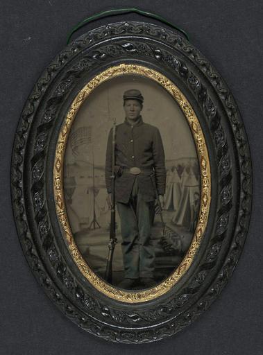 Keywords: library of congress libraryofcongress dc:identifier=http://hdl.loc.gov/loc.pnp/ppmsca.27230 dc:identifier=httphdllocgovlocpnpppmsca27230 xmlns:dc=http://purl.org/dc/elements/1.1/ xmlns:dc=httppurlorgdcelements11 people round circle ancient [Unidentified young soldier in Union sack coat and forage cap with bayonet scabbard and bayoneted musket in front of painted backdrop showing military camp] [between 1861 and 1865] 1 photograph : carte de visite-plate tintype, hand-colored ; 11.5 x 8.1 cm (case) Notes: Title devised by Library staff. Case: Thermoplastic frame with ribbon and floral pattern. Gift; Tom Liljenquist; 2010; (DLC/PP-2010:105). Subjects: United States.--Army--People--1860-1870. Soldiers--Union--1860-1870. Military uniforms--Union--1860-1870. Rifles--1860-1870. Bayonets--1860-1870. Backdrops--1860-1870. United States--History--Civil War, 1861-1865--Military personnel--Union. Format: Portrait photographs--1860-1870. Tintypes--Hand-colored--1860-1870. Rights Info: No known restrictions on publication. Repository: Library of Congress, Prints and Photographs Division, Washington, D.C. 20540 USA, hdl.loc.gov/loc.pnp/pp.print Part Of: Ambrotype/Tintype filing series (Library of Congress) (DLC) 2010650518 Liljenquist Family collection (Library of Congress) (DLC) 2010650519 More information about this collection is available at hdl.loc.gov/loc.pnp/pp.lilj Persistent URL: hdl.loc.gov/loc.pnp/ppmsca.27230 Call Number: AMB/TIN no. 2368 [Unidentified young soldier in Union sack coat and forage cap with bayonet scabbard and bayoneted musket in front of painted backdrop showing military camp] [between 1861 and 1865] 1 photograph : carte de visite-plate tintype, hand-colored ; 11.5 x 8.1 cm (case) Notes: Title devised by Library staff. Case: Thermoplastic frame with ribbon and floral pattern. Gift; Tom Liljenquist; 2010; (DLC/PP-2010:105). Subjects: United States.--Army--People--1860-1870. Soldiers--Union--1860-1870. Military uniforms--Union--1860-1870. Rifles--1860-1870. Bayonets--1860-1870. Backdrops--1860-1870. United States--History--Civil War, 1861-1865--Military personnel--Union. Format: Portrait photographs--1860-1870. Tintypes--Hand-colored--1860-1870. Rights Info: No known restrictions on publication. Repository: Library of Congress, Prints and Photographs Division, Washington, D.C. 20540 USA, hdl.loc.gov/loc.pnp/pp.print Part Of: Ambrotype/Tintype filing series (Library of Congress) (DLC) 2010650518 Liljenquist Family collection (Library of Congress) (DLC) 2010650519 More information about this collection is available at hdl.loc.gov/loc.pnp/pp.lilj Persistent URL: hdl.loc.gov/loc.pnp/ppmsca.27230 Call Number: AMB/TIN no. 2368 |